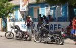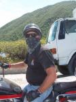 Llegamos a la frontera de Haiti/RD, paramos todos en la gasolinera a llenar, comer y cojer los pasaportes (que lo de los pasaportes lleva a otro cuento mas) Pues como estabamos en Dominicana, los grupos salieron poco a poco, segun la distancia, nosotros andabamos con los Nativos y con ellos salimos, que pasa, Canito en su espaceo total, empieza a patear la motora cuando el grupo ya estaba saliendo, yo me doy cuenta y me quedo a esperarlo. Los Nativos salen fletaos y cuando por fin Canito prende salimos extra pisaos para alcanzarlos...mas o menos a 80... Hasta este momento ninguna de las tres motoras habia tenido ningun tipo de problema, nada,,,,, peroooooo... que carajo se yo que en esa misma carrtera un poquito mas alante hay un baden (de los de zanjas) bastante profundo.. Pues yo voy alante pisao y cuando veo el boqueton no me quedo nada que hacer que pararme en los pegs y jalar el guia.... La goma de alfrente paso volando por encima pero la de atras no.... el reboton, segun canito (que le dio tiempo a mas o menos frenar y venia atras) dice que fue como de tres pies de alto y como tres o cuatro pies para el lado, o sea, la motora completa en el aire menos la goma de alfrente, pues la motora cae en el piso de nuevo... canito sigue pisao y yo le caigo atras..... Pero.. desde que tocamos la republica yo tenia la mania de mirar atras cada vez que pasabamos un policia acostao (que parecen montanas) o cualquier baden o hueco (crater) a ver si todo estaba bien.. una de las fallas de las Dyna es que tienen el tanque de aceite debajo de la transmision... Pues claro, miro pa' tras veo el chorro de aceite, trato de alcanzar a canito para decirle que nos paremos, pero sigo resbalando en mi propio aceite. Anyway, lo alcanzo en el pueblo de Jimani y por fin se para... tan pronto paro el tanque se vacia porque ya no esta circulando.... En eso pasa el camion que llevaba las motoras accidentadas y lo paro... Despues de un rato el tipo me dice que el camion esta lleno, duhhh, pues claro, le digo que siga que yo resuelvo. En eso llega Melvin, el mecanico de la harley en RD y se para... Le pregunto por algo para sellar el tanque como JB weld (que deje encima del counter en el shop como buen mamon) Ya la gente esta alrededor de las motoras, averiguando... pusimos vasos y botellas para recojer lo que quedaba de aceite por si lo tenia que usar de nuevo..